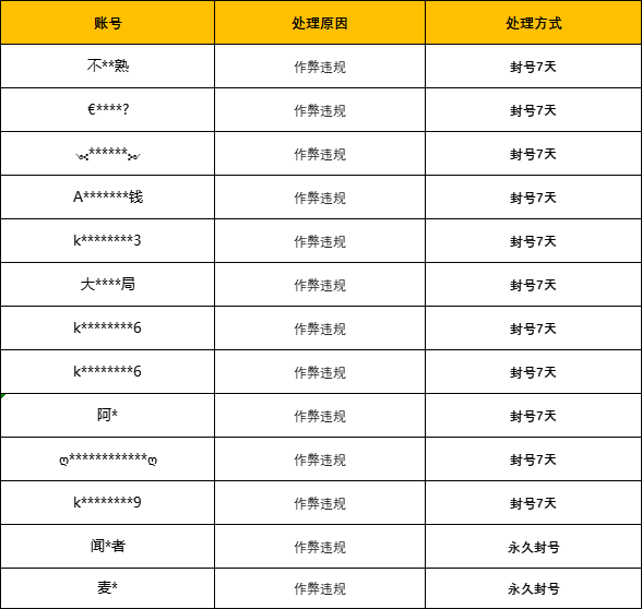 我们一直致力于给广大玩家提供一个公平公正、绿色健康的游戏环境,以保障每一位玩家愉悦的游戏体验。对于利用游戏进行非法盈利、破坏游戏平衡、影响其他用户正常游戏体验等的违规行为,平台都将进行严厉打击,根据情节严重情况予以封号警告、永久封号等处罚。