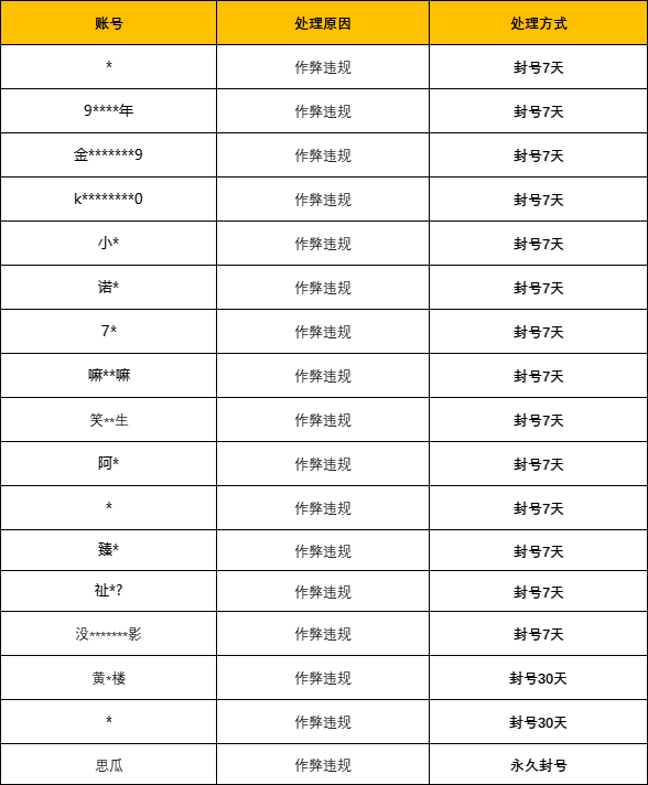 我们一直致力于给广大玩家提供一个公平公正、绿色健康的游戏环境,以保障每一位玩家愉悦的游戏体验。对于利用游戏进行非法盈利、破坏游戏平衡、影响其他用户正常游戏体验等的违规行为,平台都将进行严厉打击,根据情节严重情况予以封号警告、永久封号等处罚。
